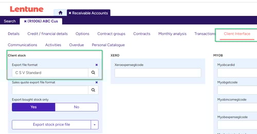 - Click to the Client Interface tab and go to the Client Stock section on the left of the screen.