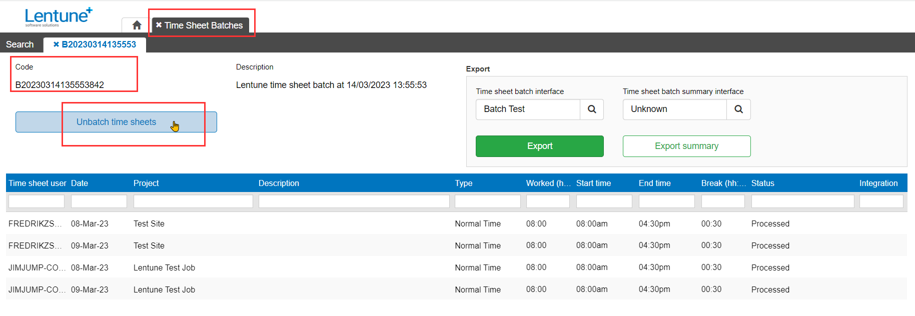Now the batch will have been reversed, and you can add any new Time sheet entries, then reprocess the time sheets for the period.